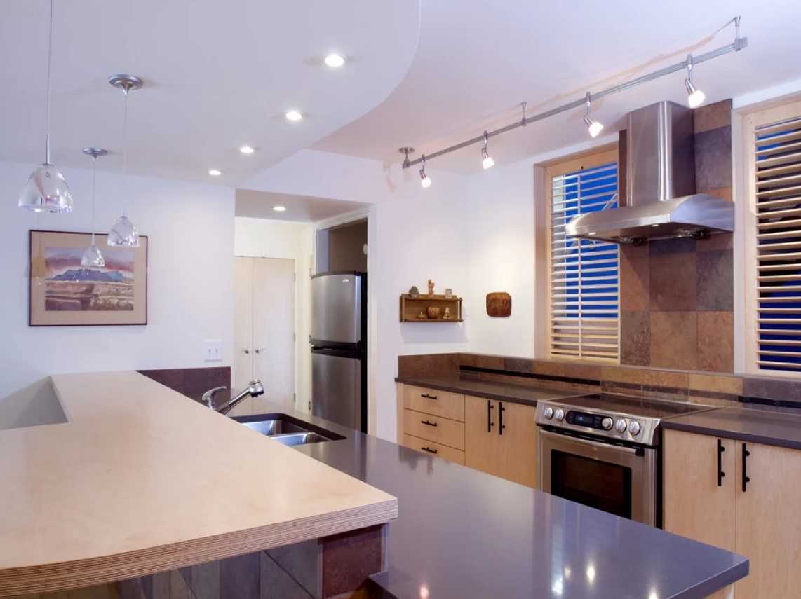 Как сделать освещение на кухне, чтобы скорректировать ее форму