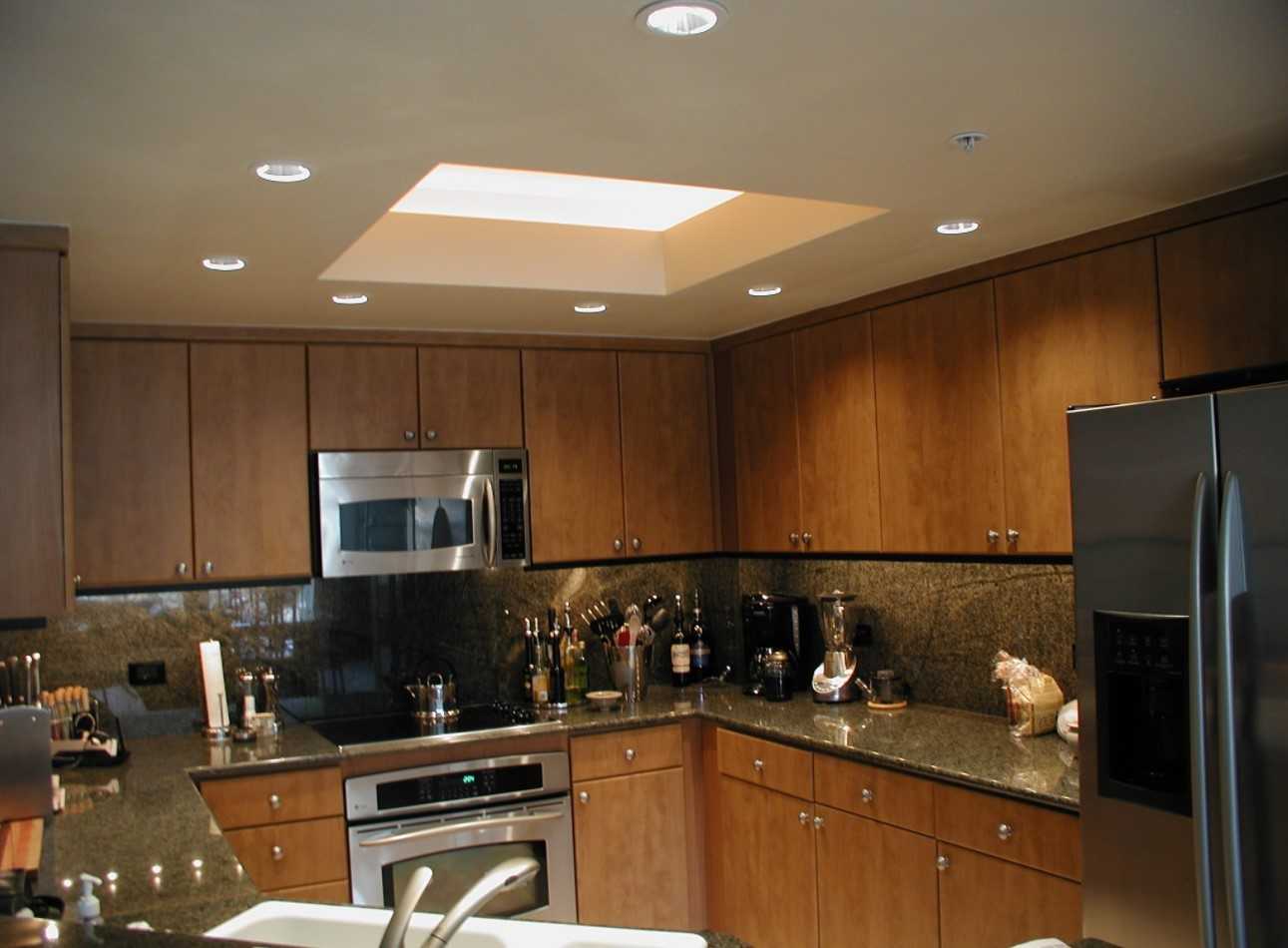 Освещение кухни точечными светильниками