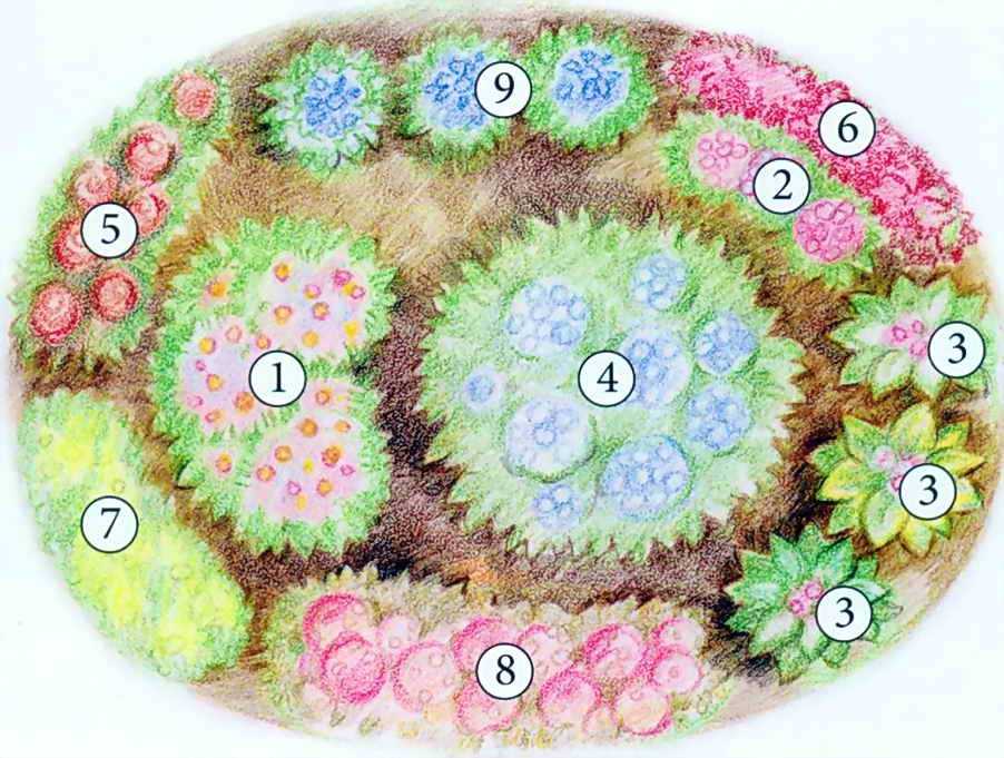 Прежде чем формировать такие сложные композиции, неплохо бы набросать на бумаге хотя бы самую простенькую схему планируемого участка с учетом его масштаба и задуманной колористики. То, что так радовало в фантазиях, может оказаться аляповатым набором несвязанных между собой пятен – и, разумеется, наоборот тоже бывает.