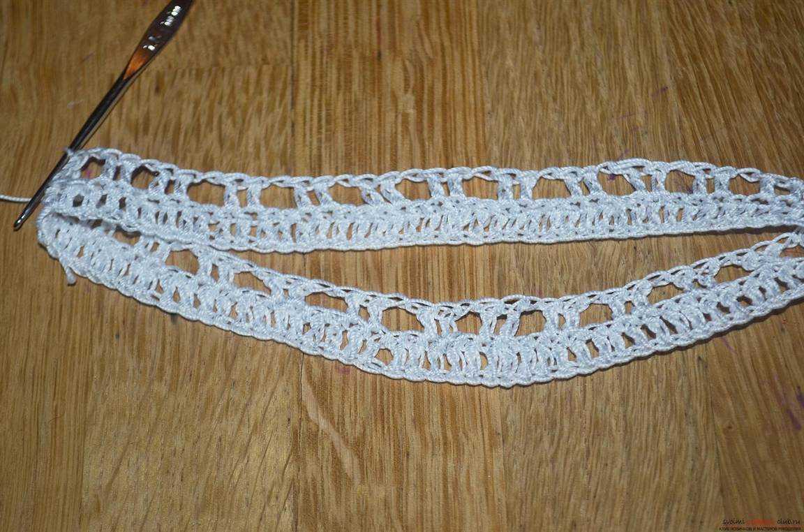 - Третий делаем из трех воздушных, поднимаем. Из нижнего ряда вывязываем новый сбн, провязываем две петельки. Вывяжем две петельки, прикрепляя сбн. И так делаем весь рядок до конца. Повесить можете под потолком, где захотите и как скажет фантазия.