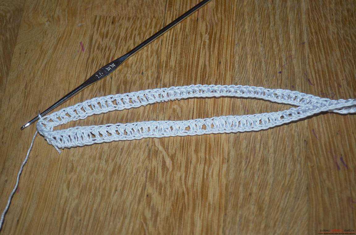 - Вязать будем сверху вниз — от узкого к широкому. Лучше заранее снять каркас со светильника, где был старый абажурчик. Затем вывязываем цепь из петелек до нужной длины.