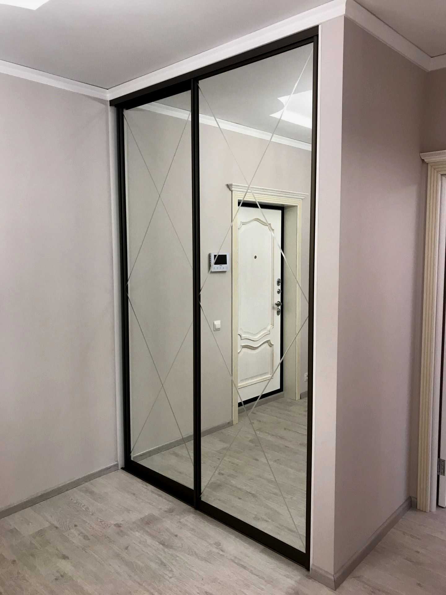Для крепления зеркала к створке необходима МДФ основа. Для обрамления лучше использовать алюминий. Декоративная рамка, прикрепленная к самому краю зеркала украсит его и может использоваться как ручка.