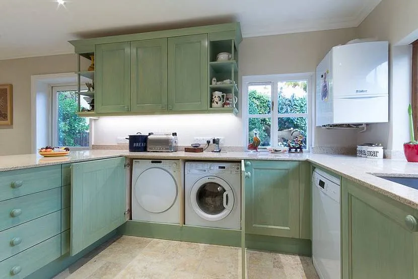 Стиральная машинка на кухне с разной планировкой