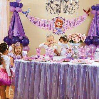 Подготовьте для гостей мероприятия красочные платья и различные украшения. Для виновницы торжества подготовьте особый аксессуар, например, корону. В качестве декора используйте цветы, ленты и воздушные шары. Основная палитра праздника состоит из таких цветов: голубой, розовый, сиреневый.
