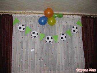 Если ваш ребенок интересуется футболом, этому виду спорта можно посвятить праздник. Дом декорируют предметами спортивной тематики. В квартире можно установить ворота, а при помощи зеленого ковра можно создать эффект игрового поля из травы. В качестве тематических нарядов можно использовать футбольную форму.