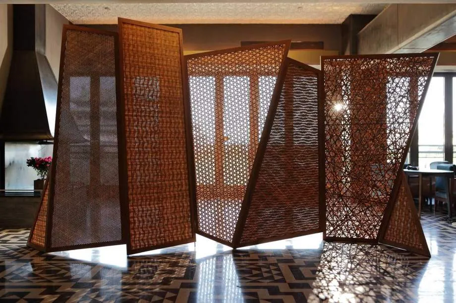 Конструкция ширмы-экрана является представителем моделей стационарного размещения. Такие заставки не складываются и монтируются к полу на постоянной основе. Каркас экрана может быть изготовлен из дерева или металлического стержня. Материалом экрана может выступать пластик, текстиль и даже плетеный металлический трос. Существуют экранные модели недорогих ширм для комнаты, ножки которых оснащены колесиками для свободного перемещения. Их можно раскладывать, они компактны и подойдут для скромных квартир.