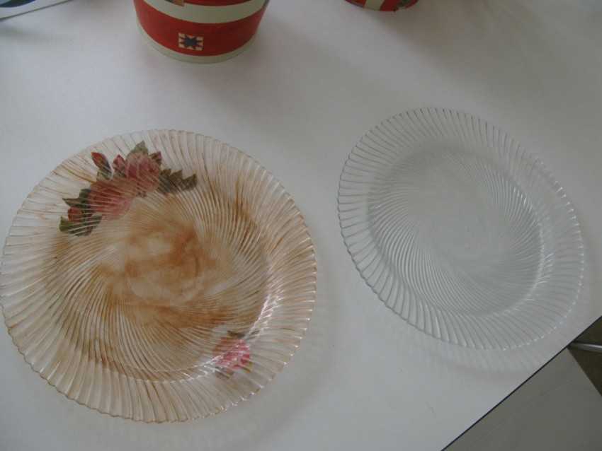 - Сначала нужно спиртом или средством для мыться окон очистить керамику и посуду от отпечатков пальцев или жира.