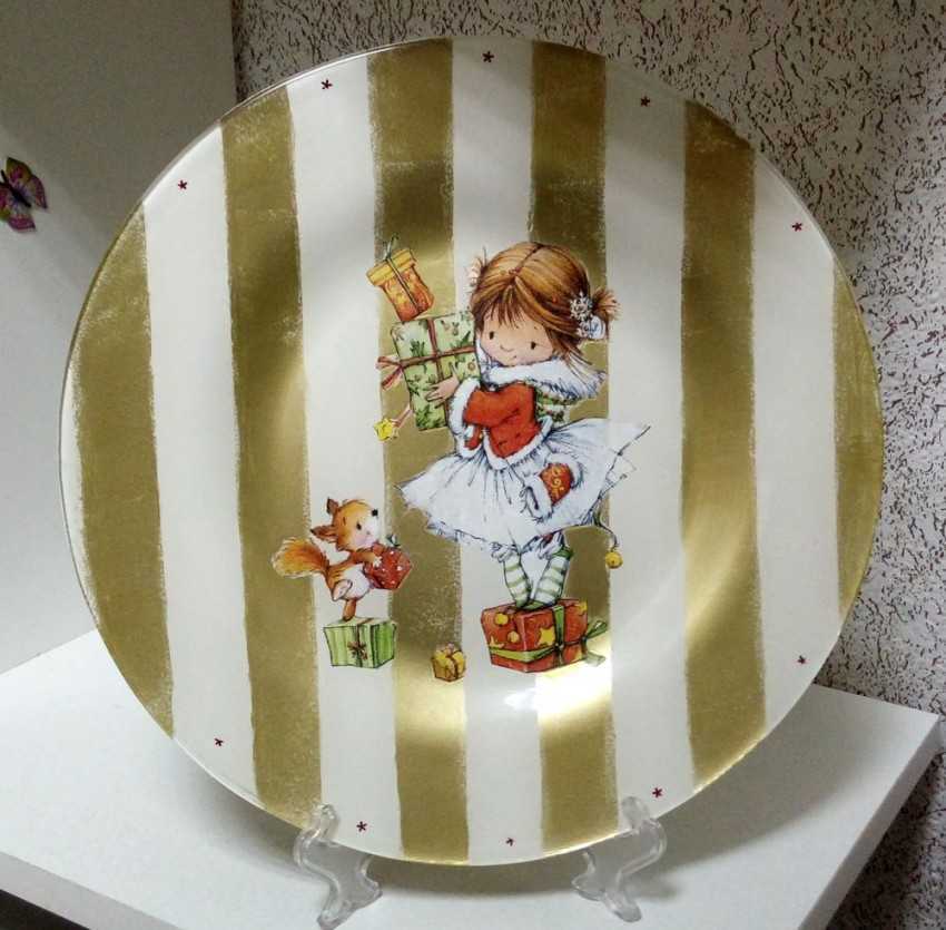 Этот способ применяется для создания декоративных тарелок. Если вы планируете не только любоваться на них, но и подавать в них фрукты и вкусности к чаю, то лучше использовать обратный декупаж.