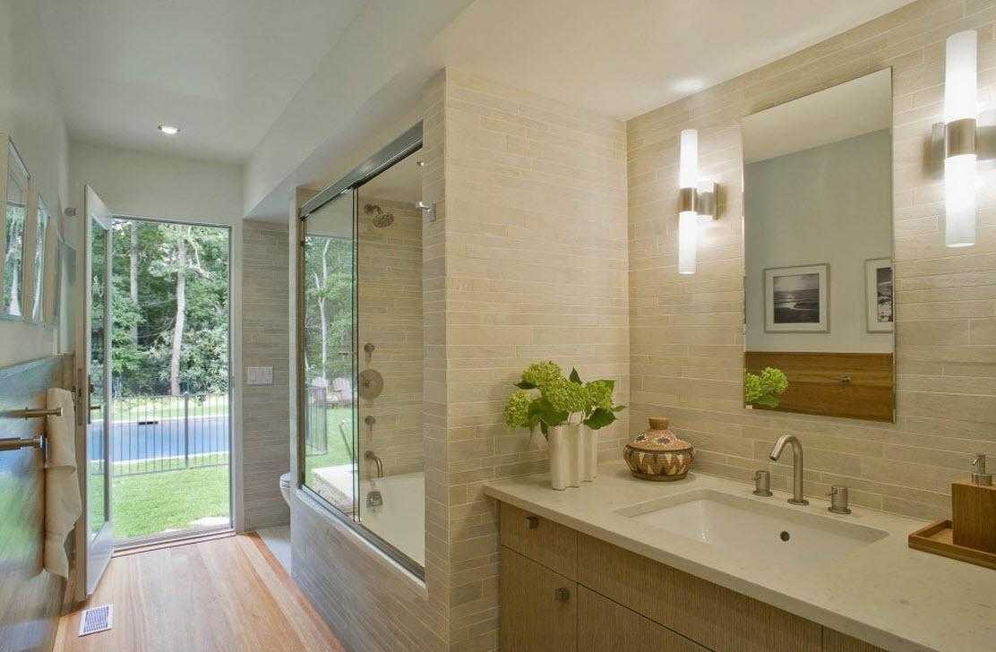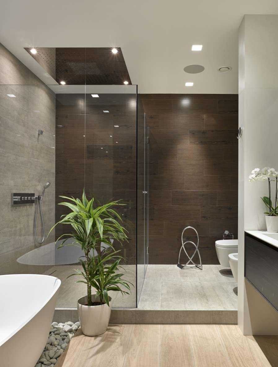 В настоящее время все большую популярность набирает эко-стиль, в котором используются как живые цветы, так и натуральные отделочные материалы. Одним из таких материалов является натуральное дерево или ламинат, имитирующий дерево. Он создает в ванной комнате современную, но в то же время теплую и уютную атмосферу.