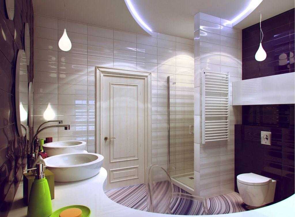 Каких-то очень строгих правил, а также запретов, дизайн ванной комнаты в квартире не предусматривает. Но эксперты все же рекомендуют выбирать яркие оттенки краски, плитки и других отделочных материалов. Цвет не обязательно должен быть белым — он требует довольно частого и тщательного ухода. Подойдут различные оттенки оливкового, розового и даже сиреневого.