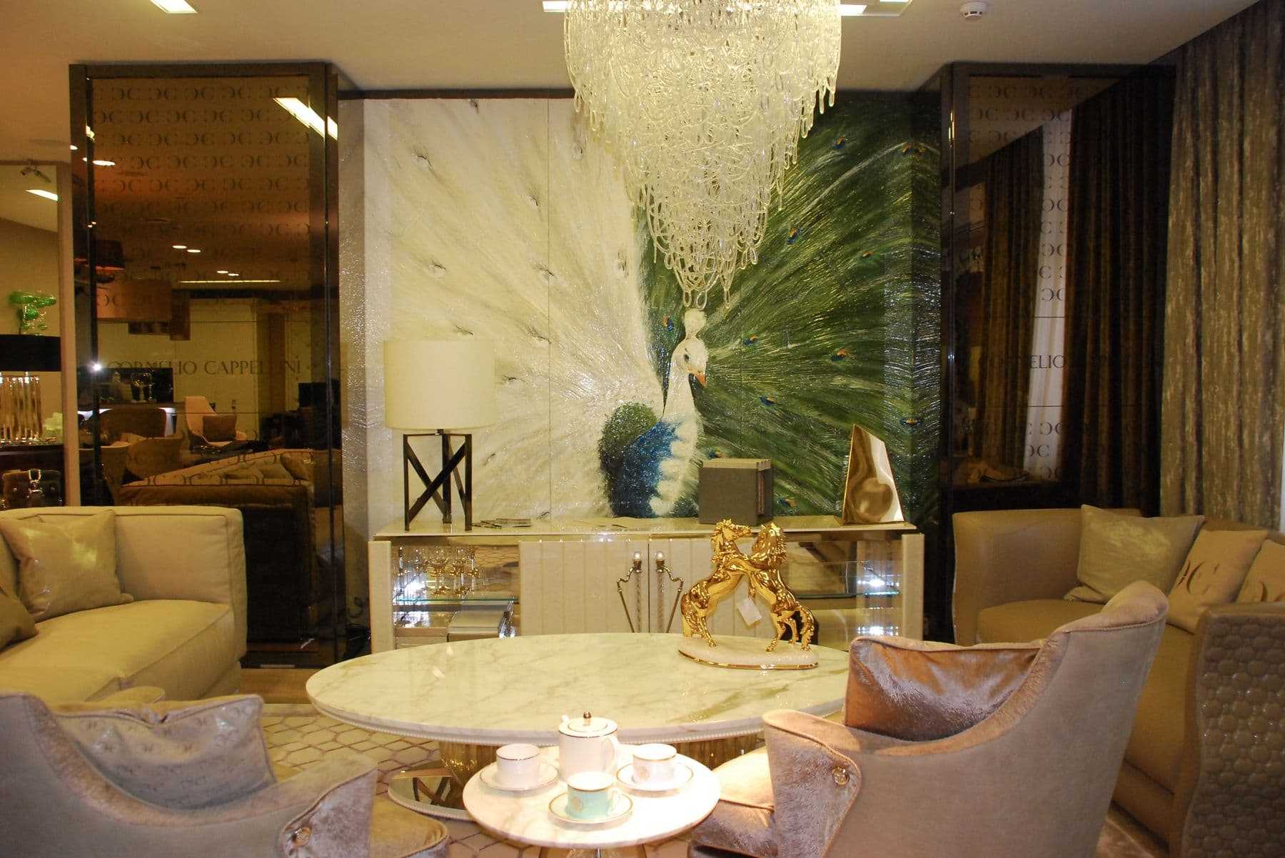 Способ подразумевает наличие центрального элемента. Это может быть стол или люстра.