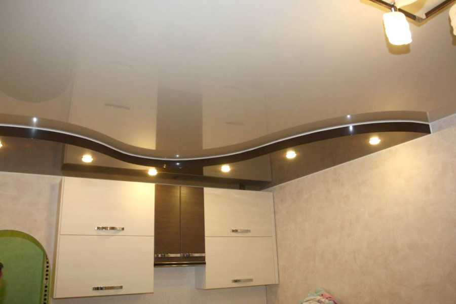 - Если есть такая возможность, можно отделать перекрытие глянцевым полотном. Оно, за счет отражающей способности, придаст помещению больший визуальный объем, чем есть на самом деле.