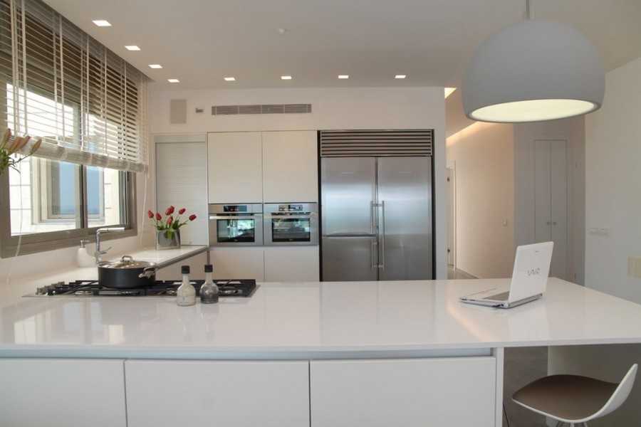 - Ниши в стенах и потолке. Рельефное пространство кажется объемнее. Сыграйте на этом эффекте, создав гипсокартонное обрамление кухонного потолка.