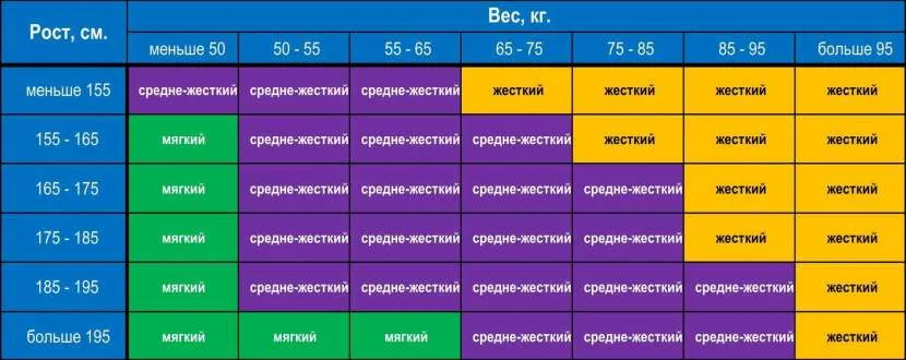 Таблица жесткости матраса в зависимости от веса и роста людейИсточник damask-m.ru