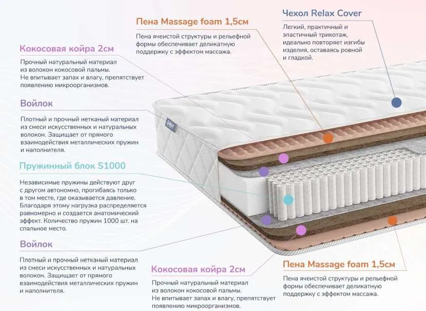 В современных матрасах в качестве наполнителей используются натуральные и синтетические материалы. Все они гипоаллергенны и безопасны, не накапливают в себе пыль и не впитывают запахи.