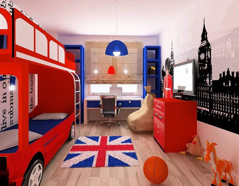 Красный и синий (голубой). Контрастное оформление оценят мальчики, имеющие представление о гоночных машинах, пепси-коле и человеке-пауке. Цвета хорошо сбалансированы, но им необходимо дополнение. Так, цвет стен в детской с красно-синим акцентом должен быть нейтральным; подойдет белая, бежевая или светло-серая отделка.