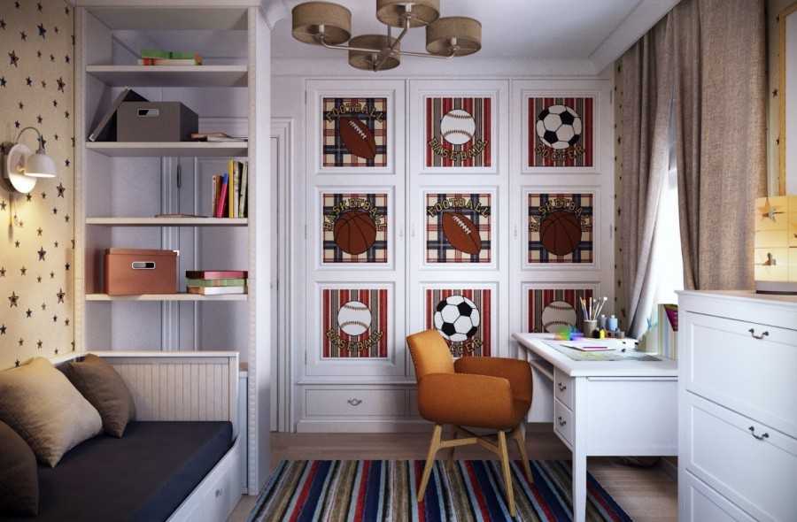 Что же до узоров, то наиболее популярными мотивами для оформления мальчишеских комнат можно назвать:
