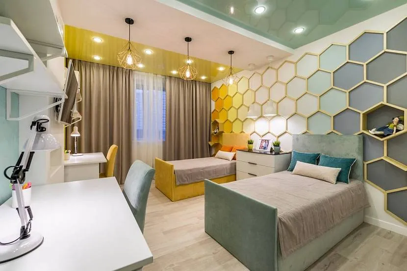 ФОТО: arlind.ruПример того, как стильно сочетать рисунок на обоях и текстиль в интерьере для подростковой комнаты