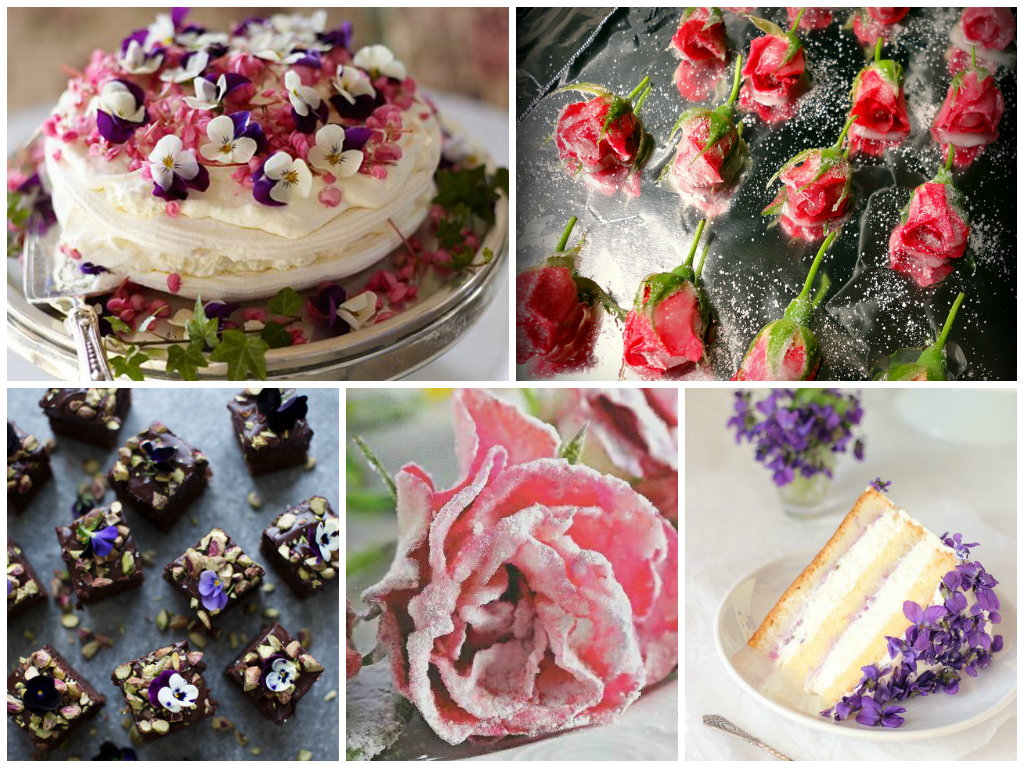 Сейчас модно украшать свежие кондитерские изделия, кексы, торты, засахаренными цветами: розами, фиалками, горохом, лавандой, бораго, монардой и т.д.