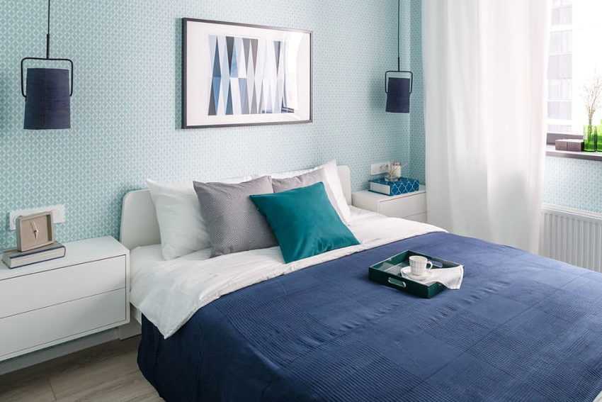Это очень важно для хорошего сна, потому что в жаркой, душной комнате невозможно полноценно расслабиться и отдохнуть. Светлые оттенки голубого, лавандового, сиреневого, фисташкового и цвета морской волны в сочетании с белым, кремовым, светло-бежевым или серебристо-серым помогут зрительно увеличить пространство и создать интересный по дизайну и восхитительно свежий, воздушный интерьер.