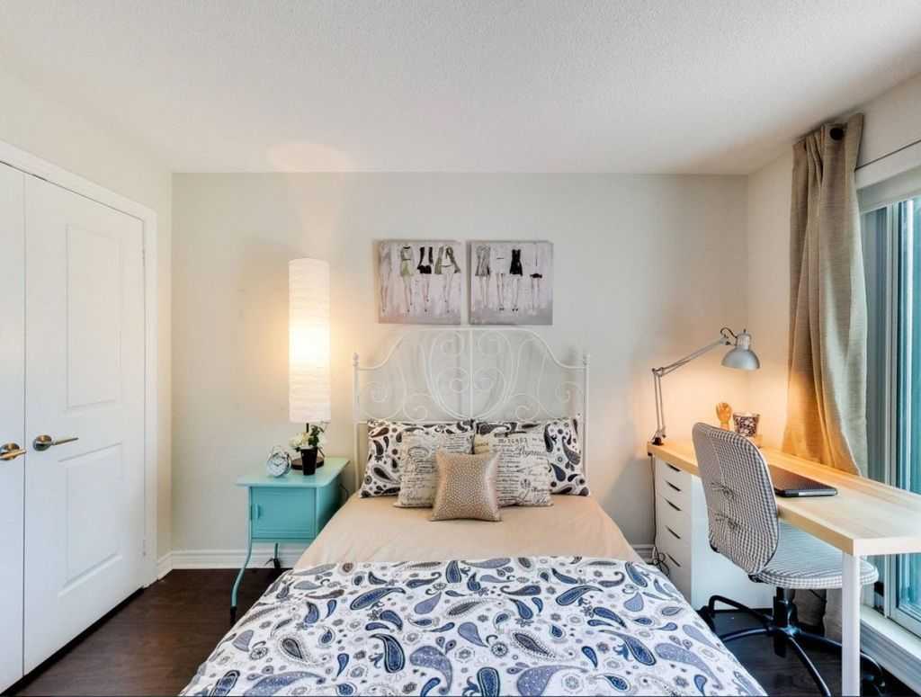 Холодный тон может добавить небольшой комнате чувство пространства, в то время как шторы из теплых цветов помогут сделать спальню более уютной.