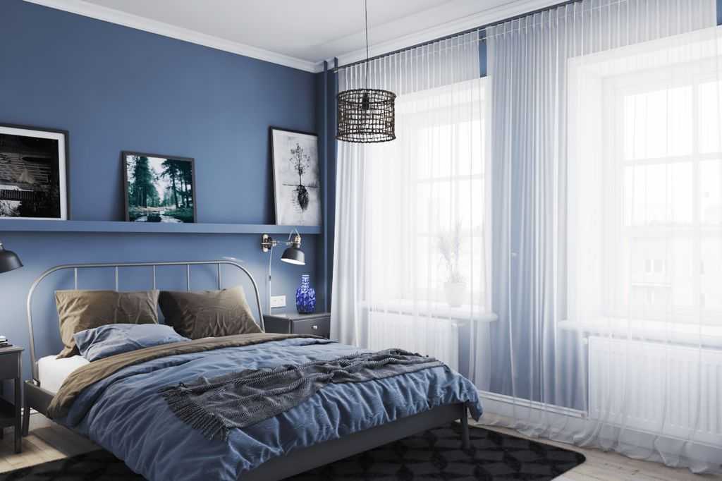 Синий цвет спальни не должен быть очень ярким, чтобы не держать человека в постоянном напряжении