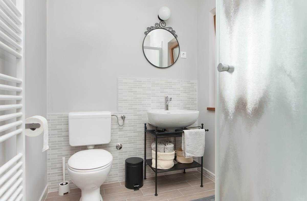 - Обязательно используйте свободное пространство, расположенное прямо над унитазом, – это место прекрасно подходит для размещения небольшого туалетного шкафчика.