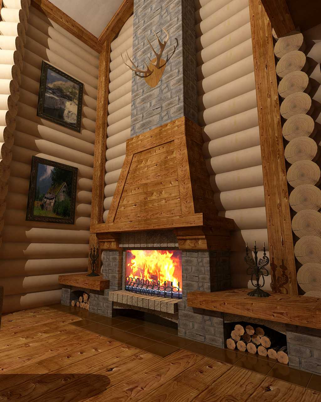 Интерьер в стиле кантри. Для отделки портала использовали натуральный камень.
