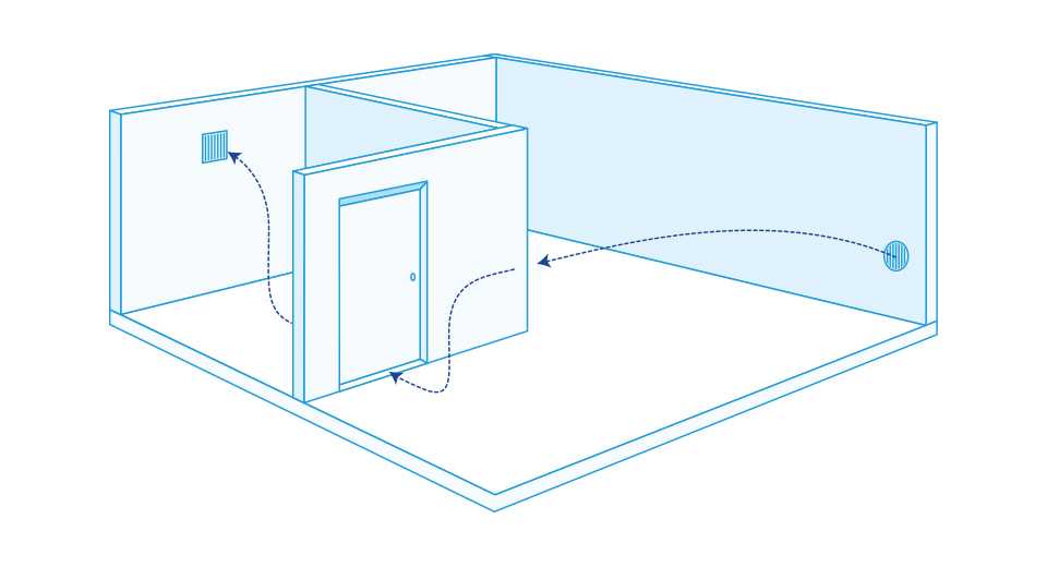 - Внутри комнаты скапливаются пыль и переработанный воздух. Он удаляется из комнаты через установленную внутри помещения систему вытяжения воздуховода.