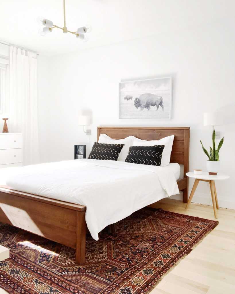 8. Ковры с принтами. От классических принтов до деталей и орнаментов или от современных стилей, эти ковры могут быть центром интереса в спальне. Если ваша спальня оформлена в простом стиле, но вы хотите добавить некую изюминку, вы можете выбрать ковер с динамичным принтом в полоску. Что касается классического «персидского» восточного коврика, то это ковер, который еще долго не выйдет из моды.