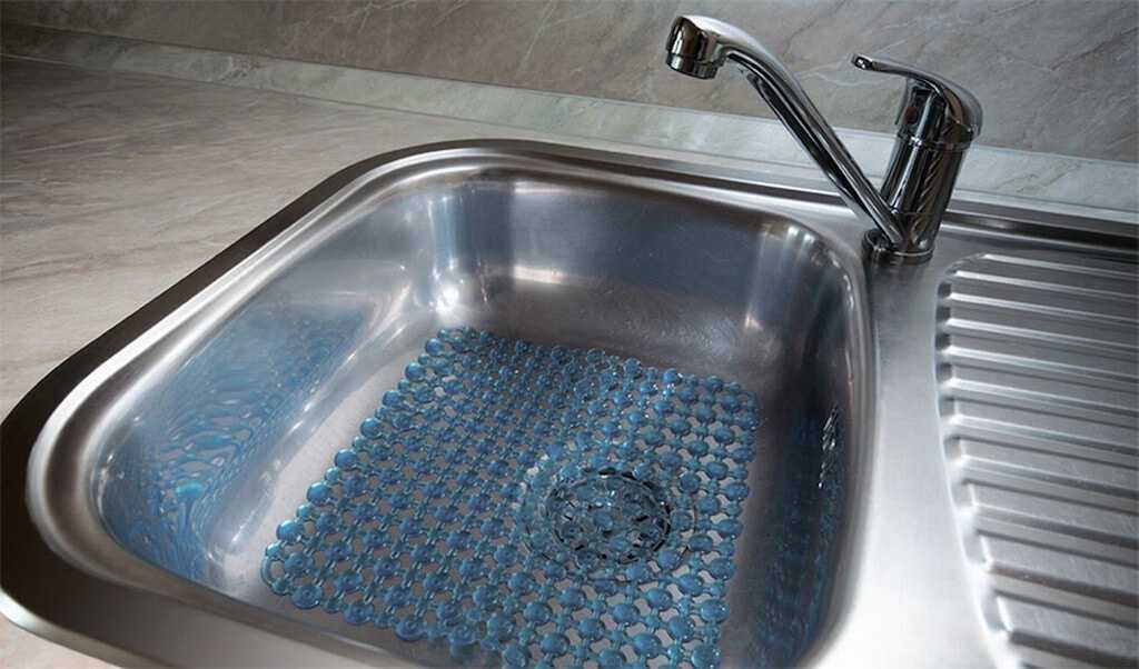 Коврики для раковин в огромном ассортименте предлагают строительные супермаркеты. Во время мытья посуды они оберегают ее от повреждений, а мойку — от возможных царапин. Также с ними удобней выбрасывать очистки овощей при приготовлении пищи. Современные коврики для раковины можно мыть в посудомоечной машине.