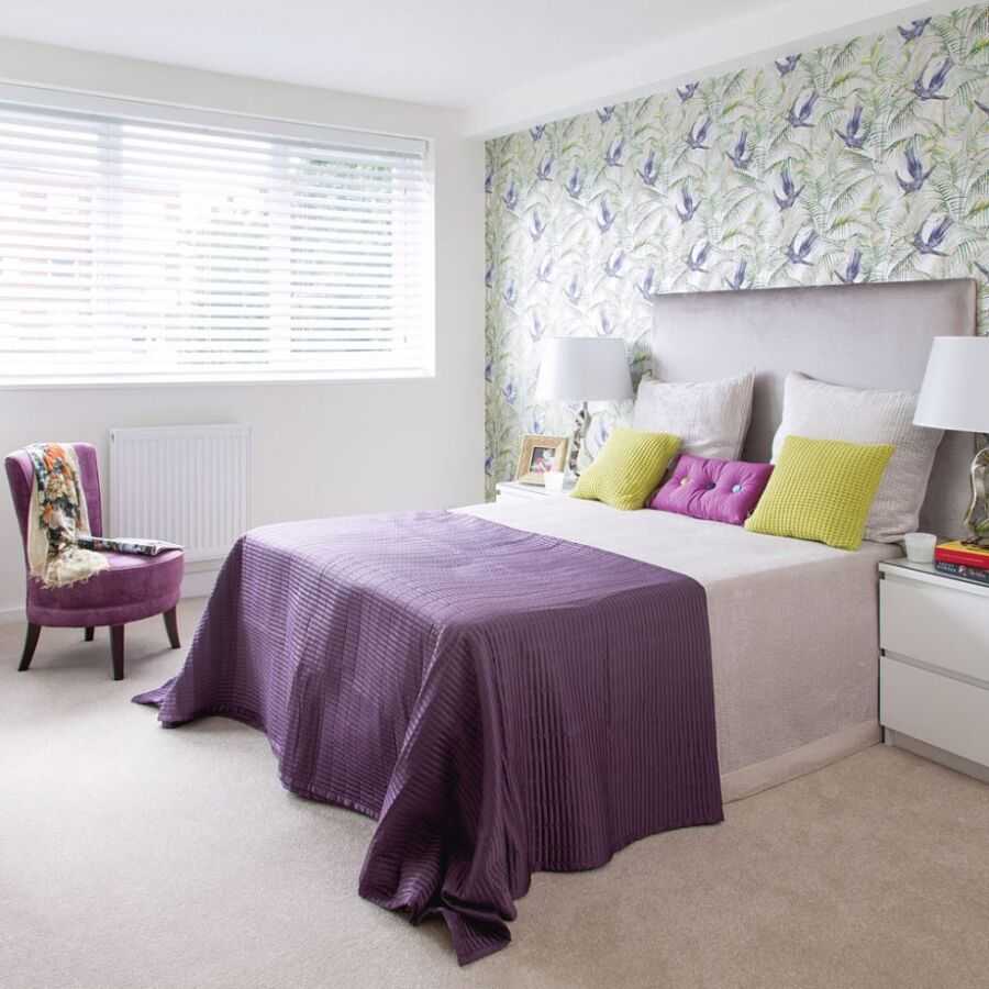Необыкновенный цвет, отличающийся роскошным видом. Кровать, укрытая фиолетовым текстилем, смотрится величественно.