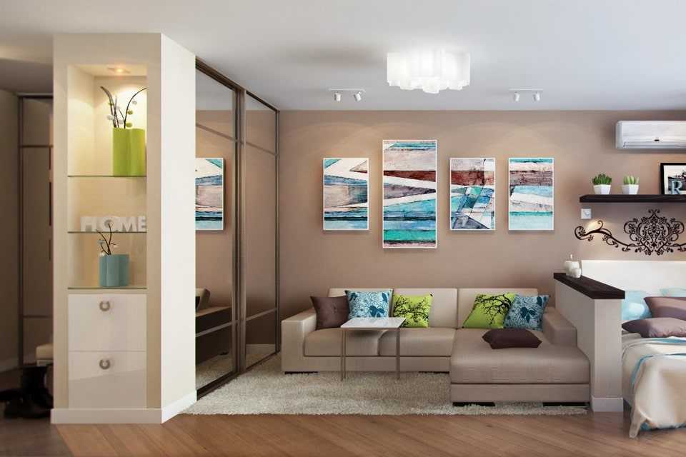 В просторных гостиных можно установить кровать со столом или сразу несколькими предметами интерьера.