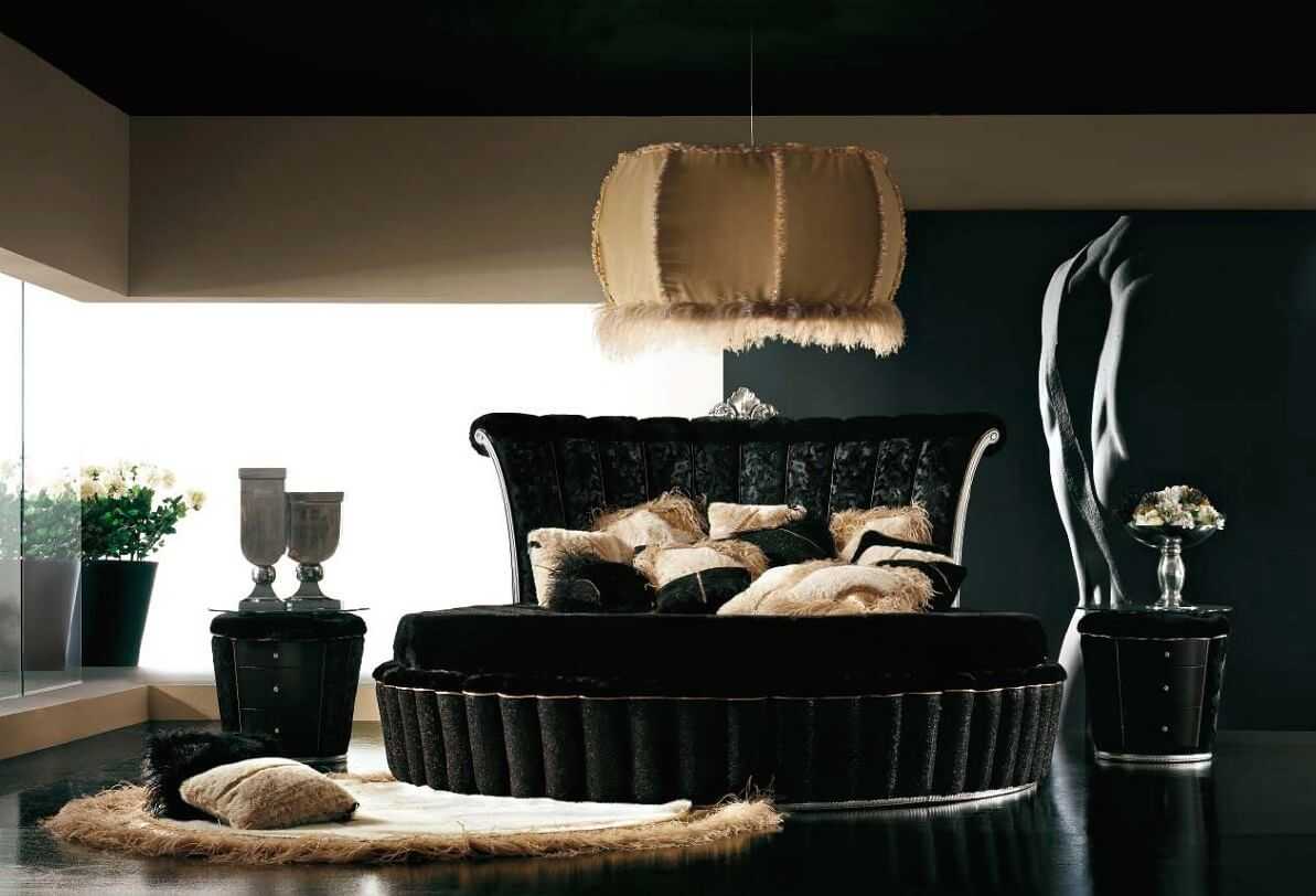 К круглой кровати необходимо подходить исходя из правил выбора мебели для спальни