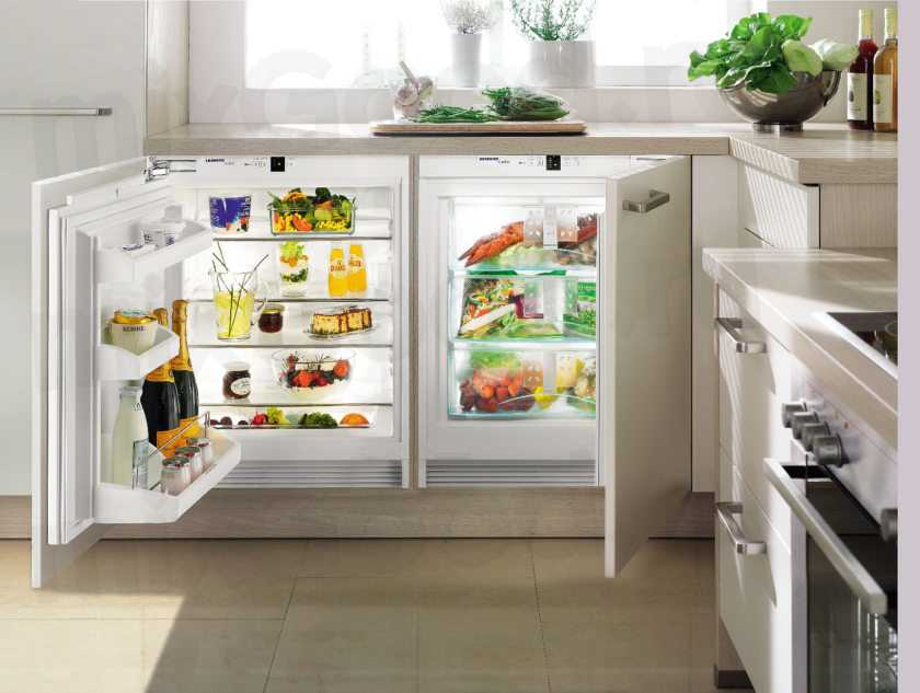 - Купить по отдельности морозилку и холодильную камеру. Они могут стоять под столешницей или в шкафчике.