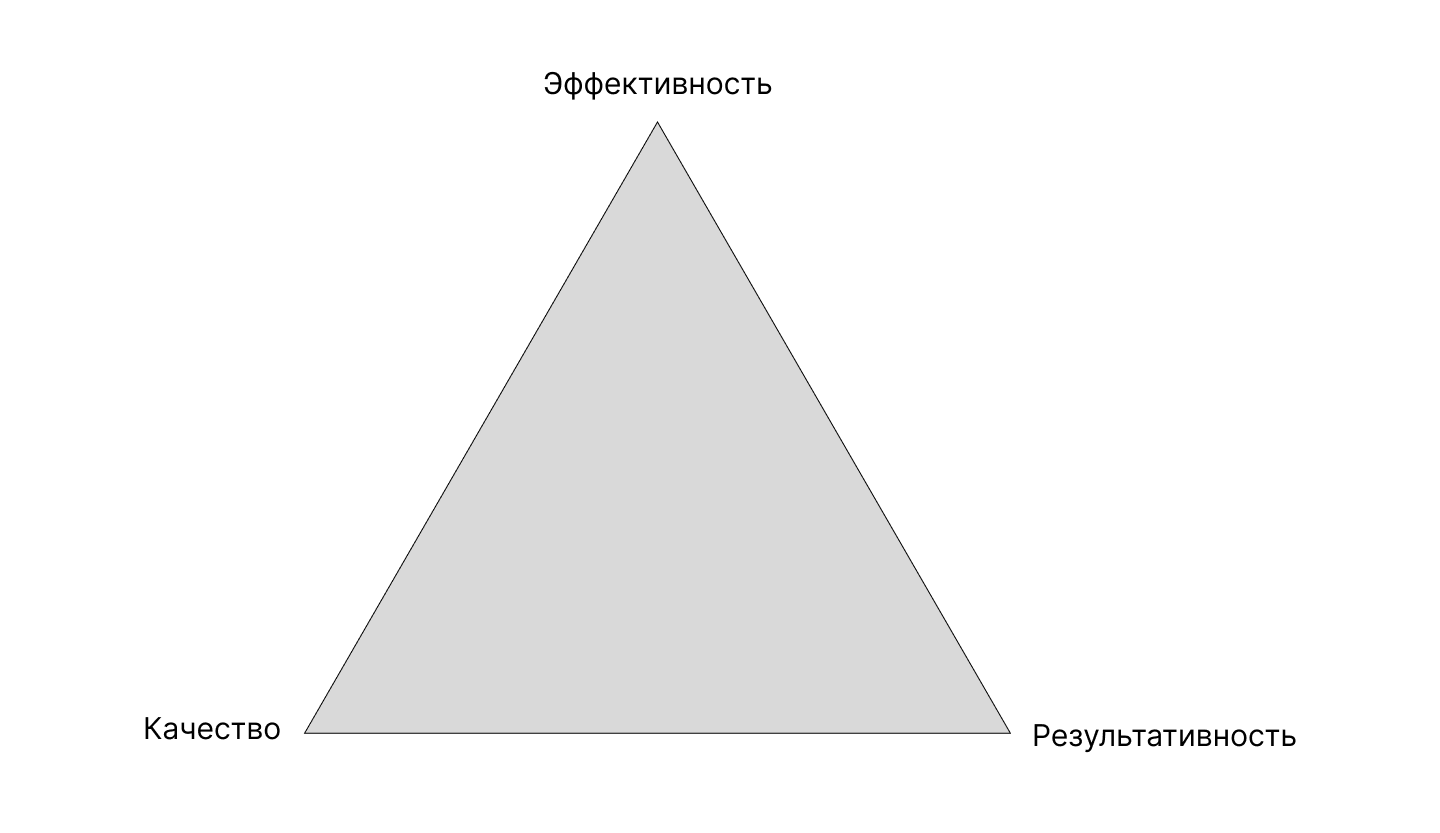 Главный треугольник бизнеса — это треугольник, на вершинах которого находятся три ключевых для компании показателя: результативность, эффективность и качество.