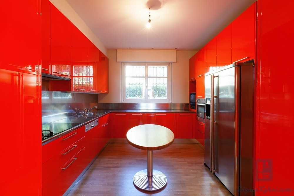 Для вытянутых и узких помещений отлично подойдет параллельная планировка при оформлении кухонного пространства. Вдоль одной из больших стен обычно располагают функциональную зону, а именно плиту, мойку, рабочую поверхность, а на параллельной ей стене устанавливают духовой шкаф, холодильное оборудование, буфет, шкафчики с красивой посудой, бар, бутылочницу и т.д.