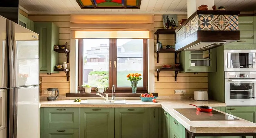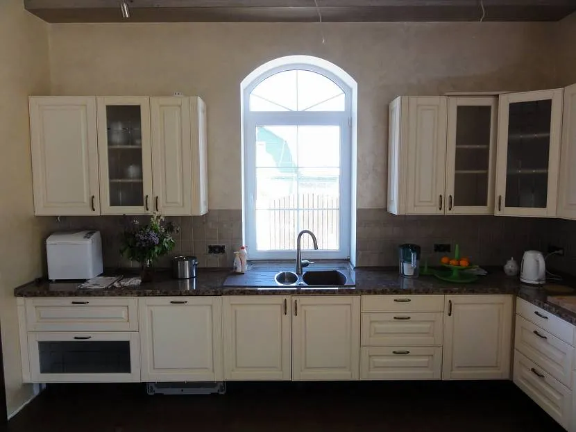 Вариант кухни, размещенной под проемом, встречается редко. Большинство хозяев стараются сделать оконный проем доступным. Существуют дома, в которых окно и вовсе отсутствует. Принято учитывать все достоинства и недостатки кухонных помещений с доступом естественного уличного света. Сначала о плюсах: