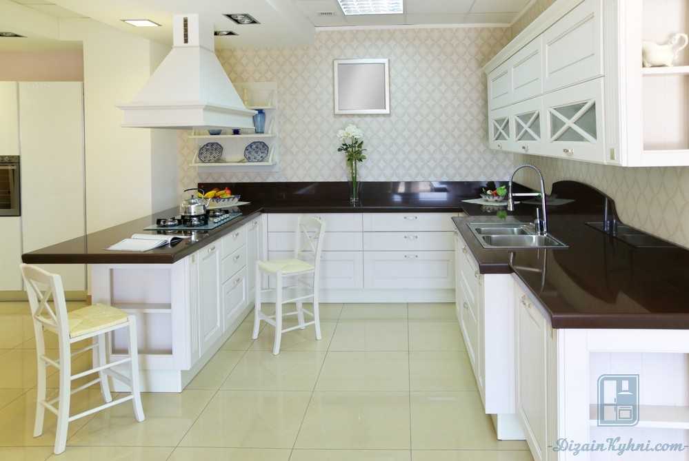 П-образная кухонная зона отличный вариант для любого помещения, она рациональна в процессе приготовления пищи, при такой расстановке мебели приходится осуществлять минимум лишних движений.