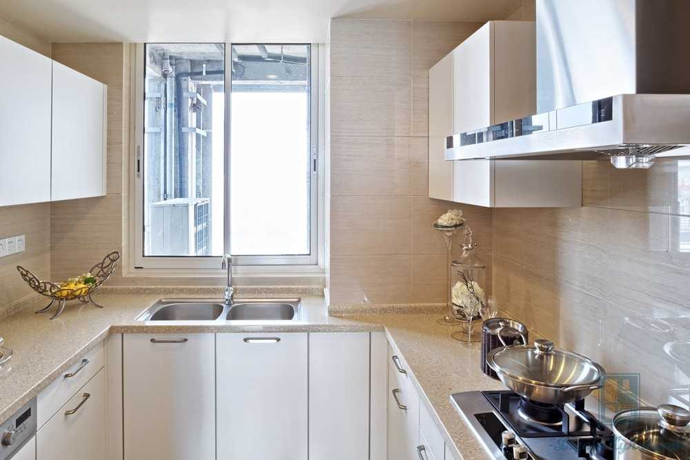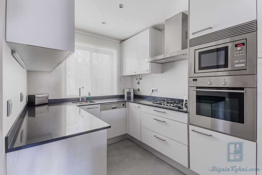 П-образный гарнитур в маленькой квартире подойдет тем, кто хочет максимально использовать площадь. Такая планировка позволяет организовать большой склад, большую рабочую зону и обеспечить всем необходимым оборудованием. Стол в виде части гарнитура (на подоконнике / как барная стойка) сэкономит место, если его невозможно перенести в другую комнату.