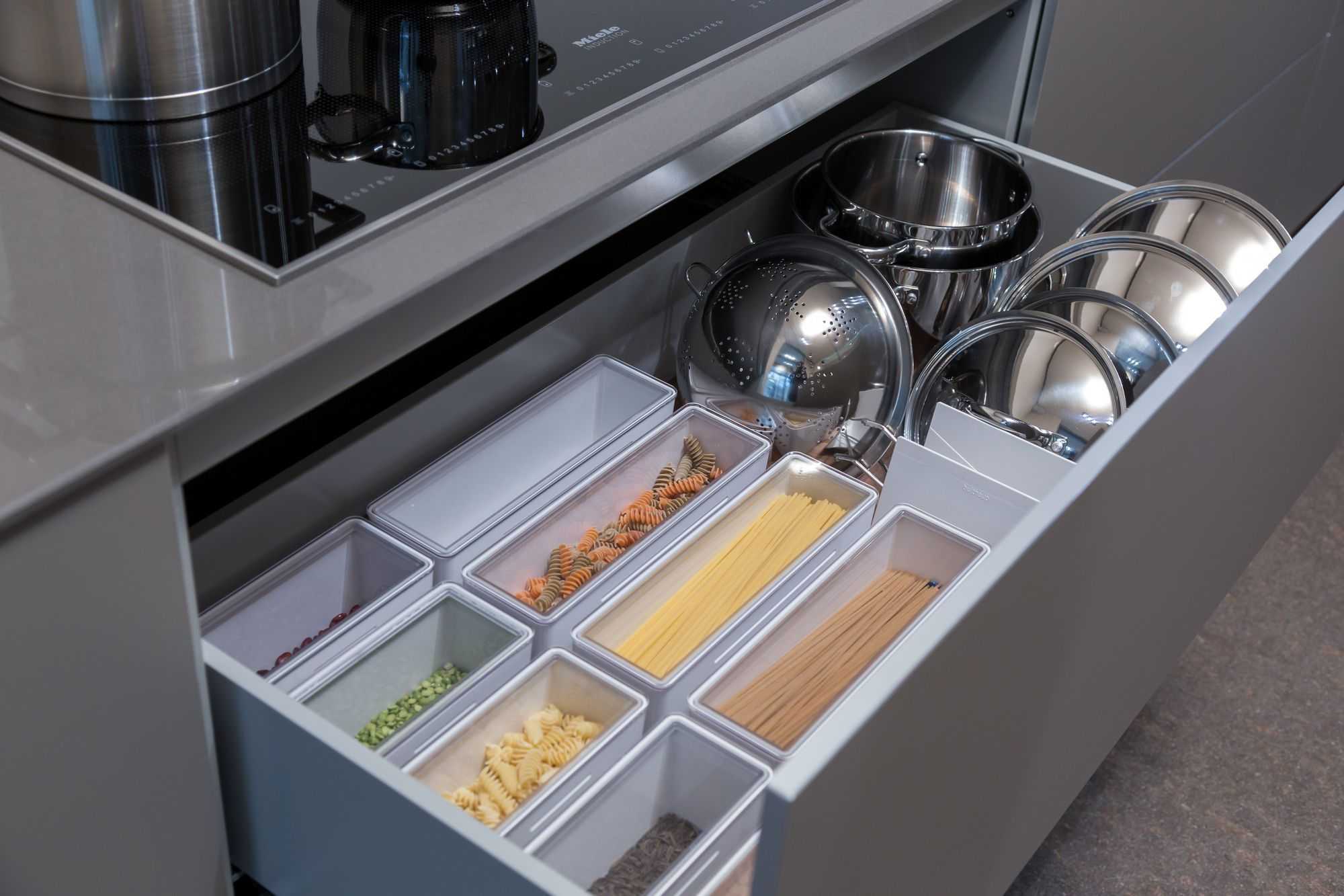 Карандашные шкафы с холодильником нужно размещать по краям гарнитура — на концах буквы П. В современных кухнях из высоких шкафов часто создают встроенный модуль: «растворяясь» в пространстве, они радуют хозяев увеличенная емкость.