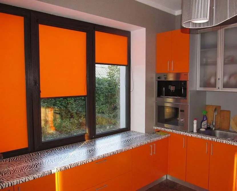 - Неудобно выполнять мойку и чистку, и навешивать жалюзи. Дискомфорт создает кухонный гарнитур.