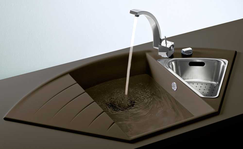 Мойки различаются количеством чаш. Популярнее всего модели с одной емкостью, но пользуются спросом и другие – двойные и тройные раковины. Одну чашу используют для мытья посуды, другую – для размораживания мяса, рыбы, третью – для мытья овощей и фруктов. Дополнительные чаши не всегда имеют сливное отверстие, но удобнее сделать слив со всех отделений. У большинства моделей основная мойка глубже и шире дополнительных. Компоновка чаш также отличается. Особенно интересно смотрятся конструкции с несколькими чашами в угловом исполнении.