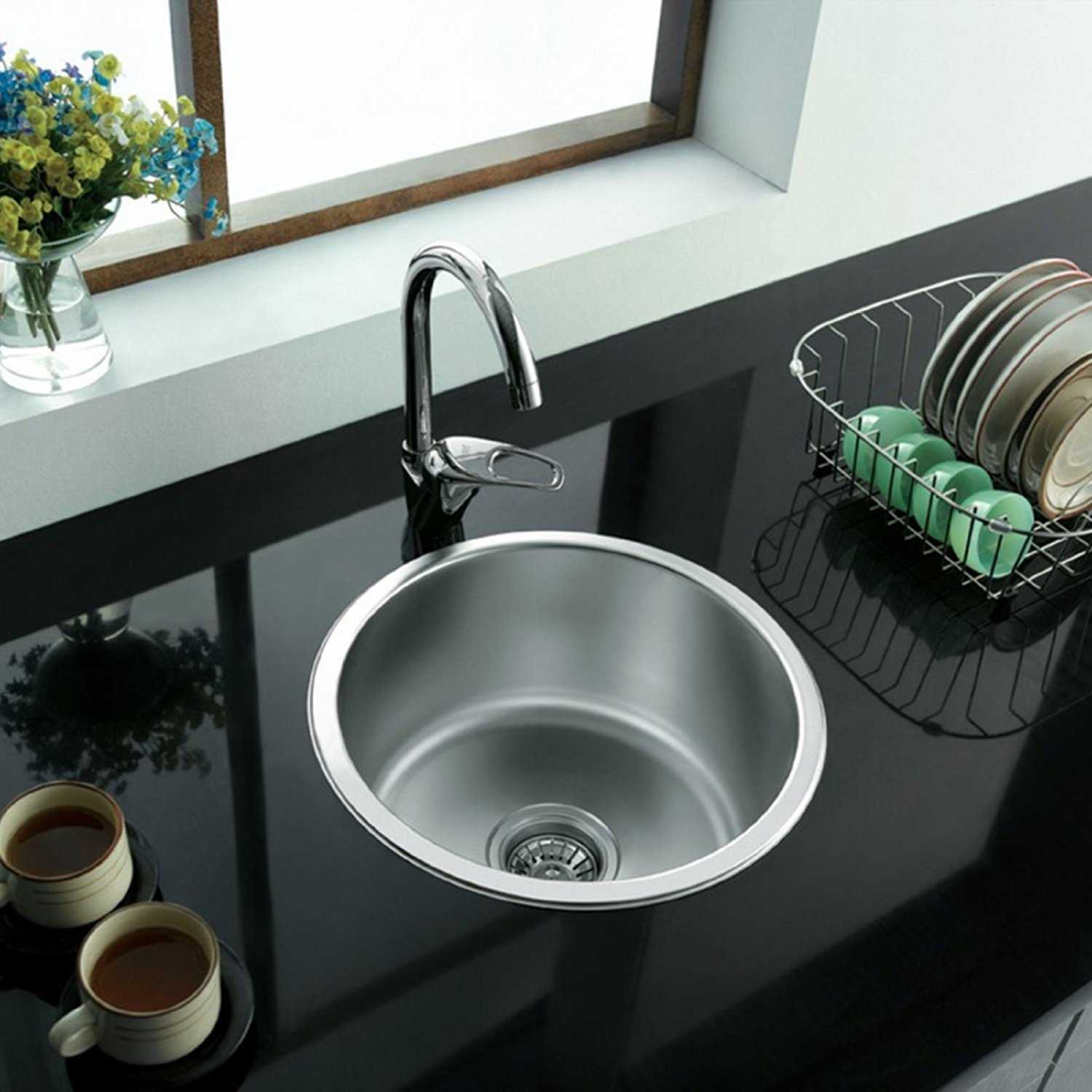 Круглые модели очень удобны в эксплуатации. Стандартный их диаметр составляет 45–51 см. Выпускают круглые мойки для кухонь и большего размера.