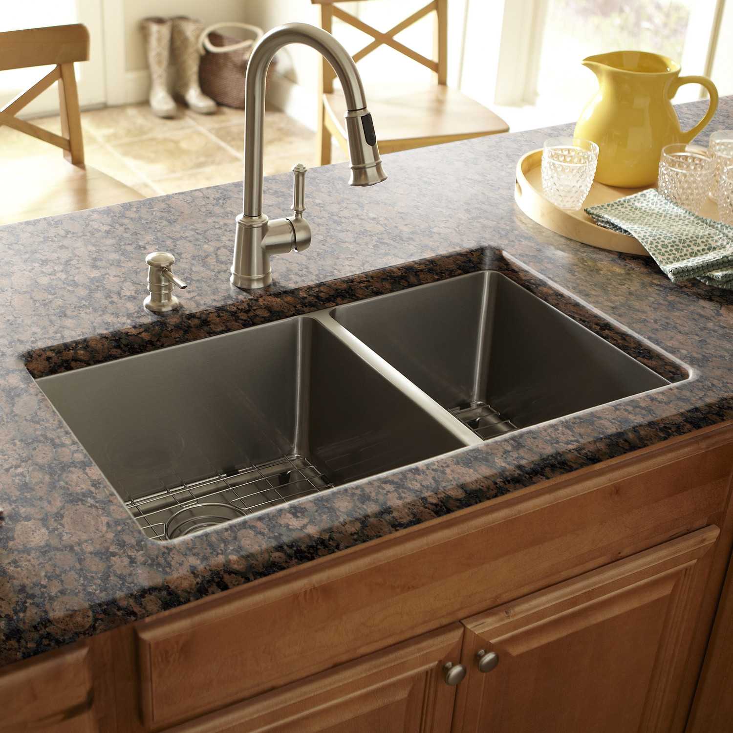 Для мойки с несколькими чашами нужно приобрести смеситель с выдвижной лейкой или качественный кран, способный выдержать нагрузку от постоянных поворотов.