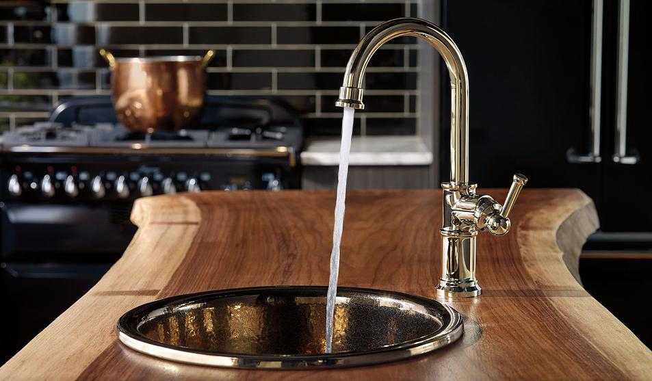 Над глубокой мойкой следует установить высокий кран. Вода все равно не будет разбрызгиваться. Это сделает мытье посуды еще более удобным.