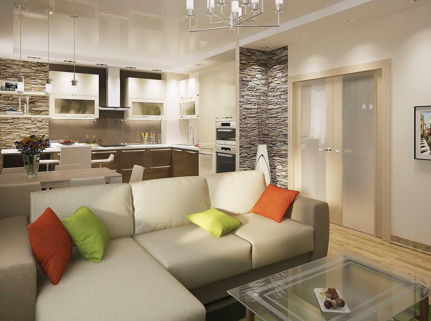 При 50 кв м может получиться в одной половине уютная спальня, а в другой отдельный уголок отдыха. В качестве перегородки можно поставить прозрачные. Это придаст помещению современный, презентабельный вид. В квартире может быть объединена кухня с гостиной и отдельная спальня. Все это может быть удобным вариантом для семейной пары.