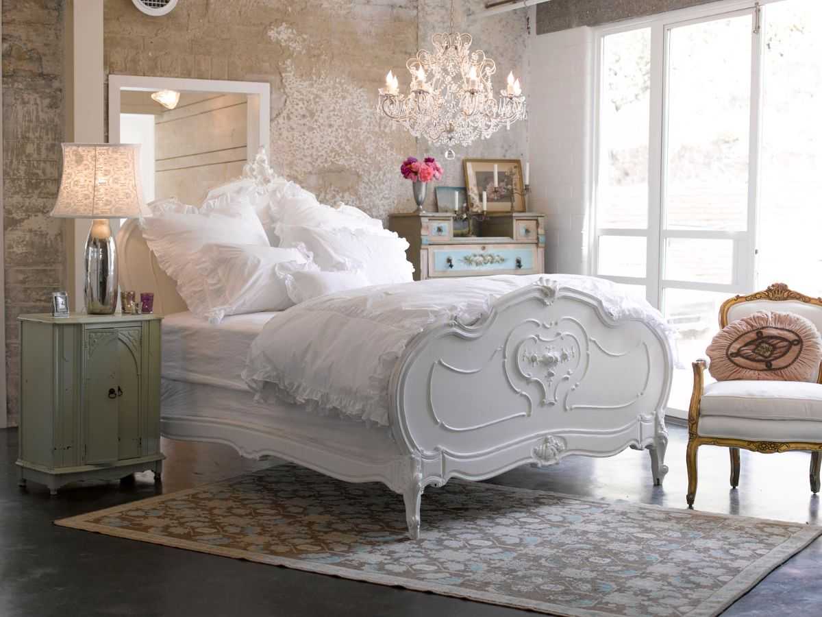 Винтажную спальню зачастую оформляют антикварной мебелью. Отлично подойдут кровати с балдахином либо резными деревянными ножками.