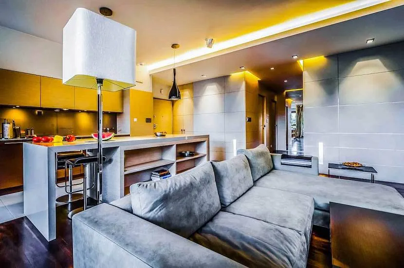Дизайн современной кухни-гостиной отталкивается от идеи открытой планировки. Он выстраивается так, чтобы оптимальным способом соединить разные по функционалу зоны: кухонную, столовую и гостиную. Прежде чем приступать к перепланировке, необходимо удостовериться в возможности совмещения комнат.