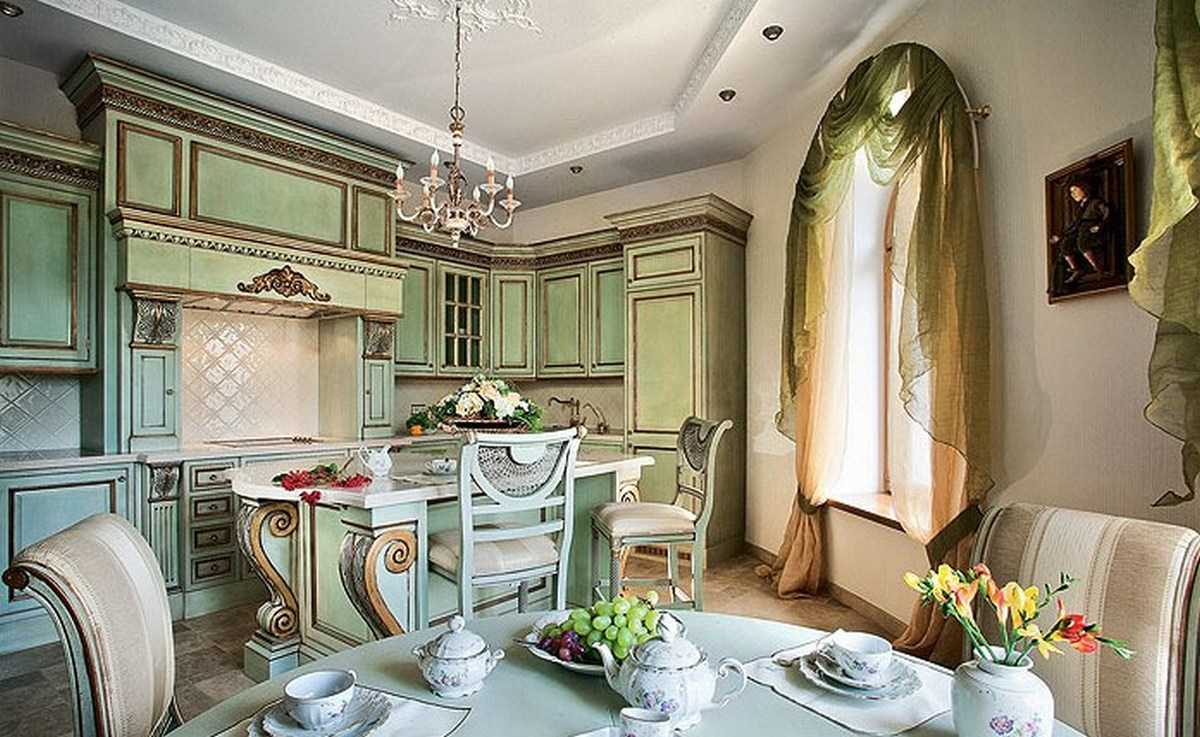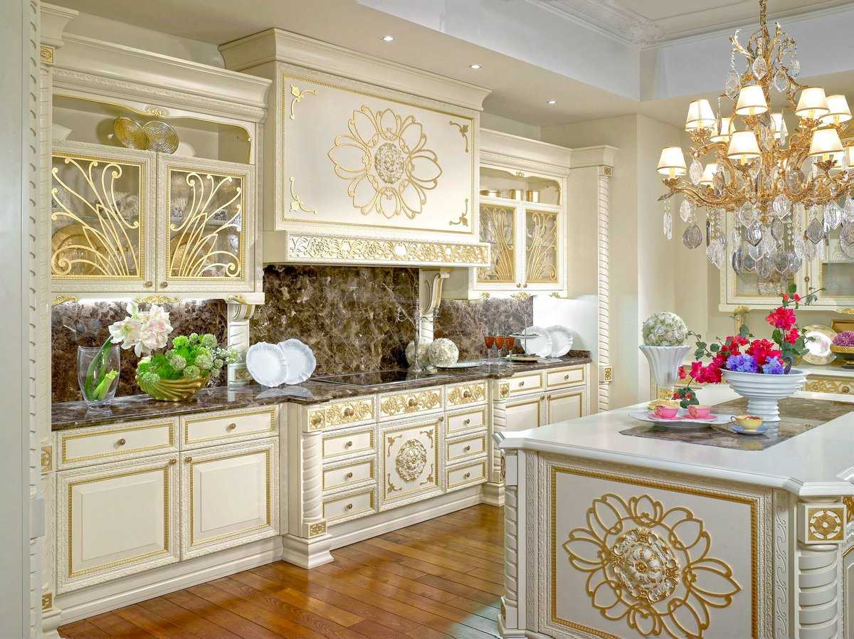 Преобразовать интерьер дома в стиле барокко под современный будет уместно как раз на кухне. Здесь перед нами встаёт задачка не из простых, ведь нужно сделать кухню не только богемной, но ещё и удобной в эксплуатации.